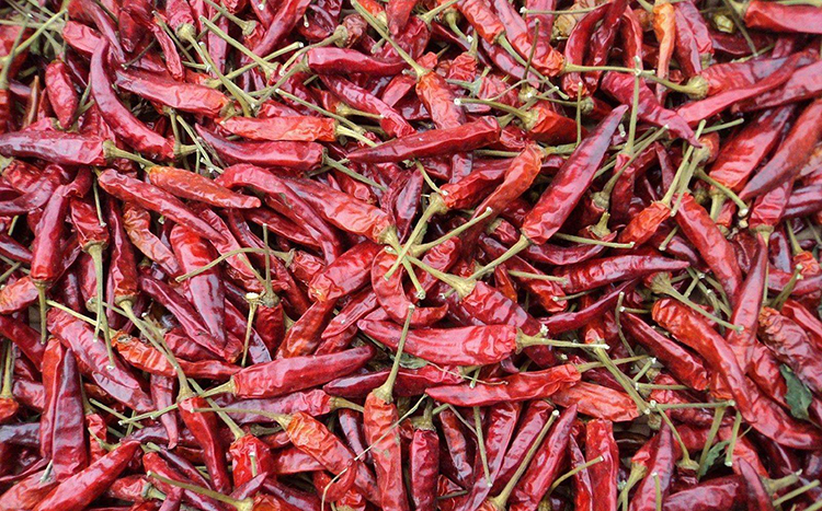 分段干燥是目前辣椒干燥較優(yōu)越的方法,即將含水率75%--85%的辣椒,第一次烘干到含水率50%踩堆發(fā)汗,發(fā)汗后再進(jìn)行第二次烘干。踩堆發(fā)汗:在辣椒干燥工藝中是一個(gè)很重要的步驟,是否采用這一步驟對(duì)辣椒品質(zhì)和烘干時(shí)間、烘干量都有很大影響。辣椒在烘干過(guò)程中都有明顯的軟化和膨脹現(xiàn)象。踩堆發(fā)汗的主要作用是調(diào)質(zhì),使辣椒油向表面滲透,烘干后的辣椒顏色一致,紅潤(rùn)光滑,并促使辯椒含水率趨于平衡。如不進(jìn)行踩堆發(fā)汗,烘干1000公斤辣椒,熱風(fēng)溫度40--60℃時(shí)需時(shí)間63小時(shí),踩堆發(fā)汗后則可縮短到40小時(shí)左右,而且,花黃殼顯著減少。辣椒踩堆發(fā)汗后進(jìn)入第二烘干時(shí),不宜過(guò)多的翻動(dòng),不然會(huì)提高辣椒的破損率,降低其銷售價(jià)格。